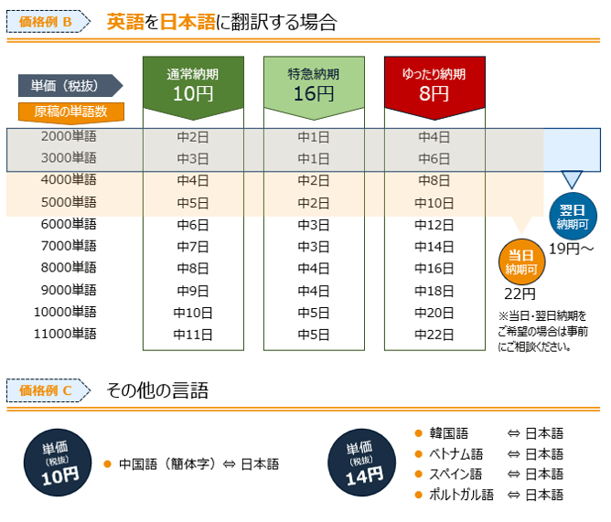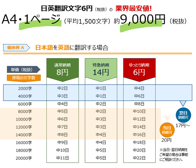 お急ぎの方への高速翻訳プランもご用意しております。最短で当日ご案内させていただきます。